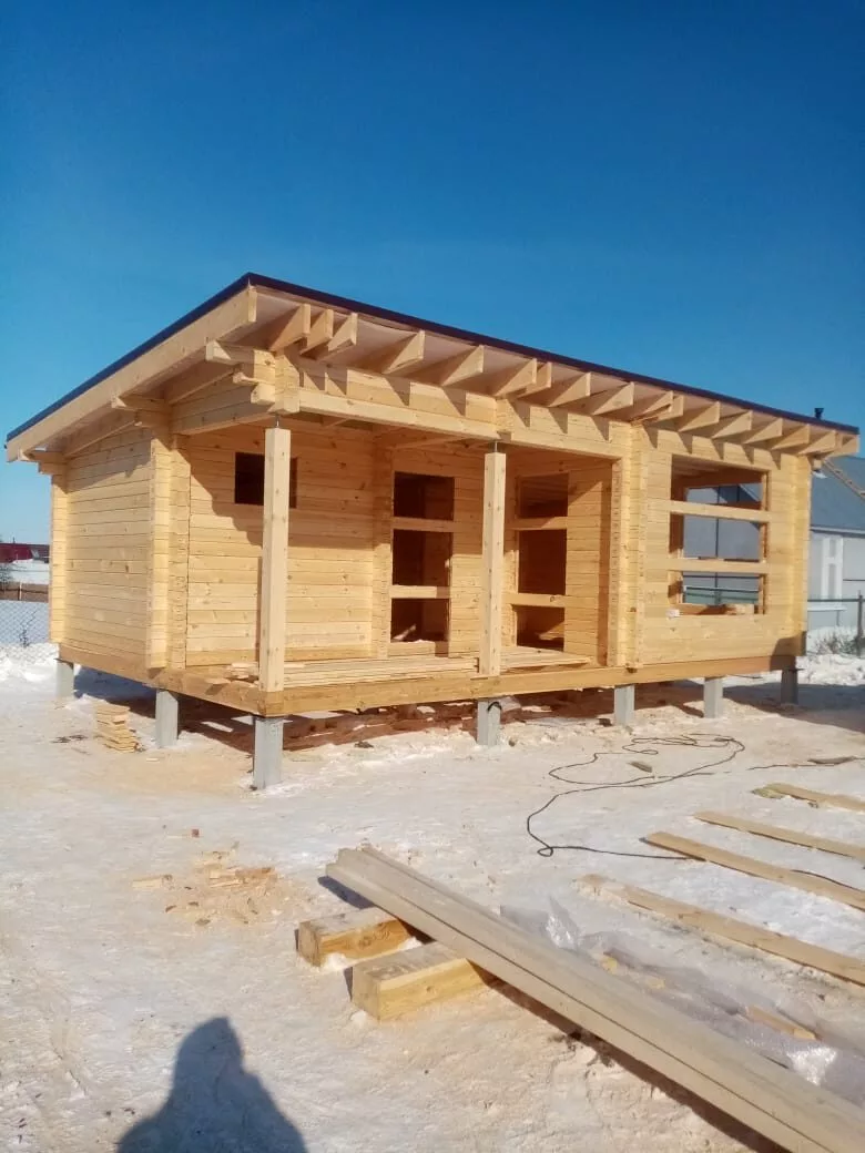 Массив СОСНА естественной влажности, под усадку. Монтаж в чашку. Бане необходимо дать время отстояться от 6 месяцев, без окон, без дверей, без чистовой отделки. Но, это позволит осуществить равномерную усадку сруба, а это меньше будущих трещин на внешних и внутренних стенах дома. В стоимость входит: монтаж обвязочного венца и лаг пола из лиственницы, стенового комплекта, балок перекрытий, стропильной системы с обрешеткой и металлочерепицы. Доставка пиломатериалов рассчитывается индивидуально, в зависимости от удаленности объекта строительства. Но, если у вас есть собственный грузовой транспорт, можете произвести самовывоз с территории цеха. Фундамент, как правило, рассчитывается индивидуально, в зависимости от типа (блоки, сваи, лента) и вида грунтов на вашем участке.